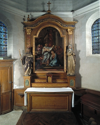 Ensemble de l'autel secondaire nord (autel, retable, tabernacle, 2 gradins),