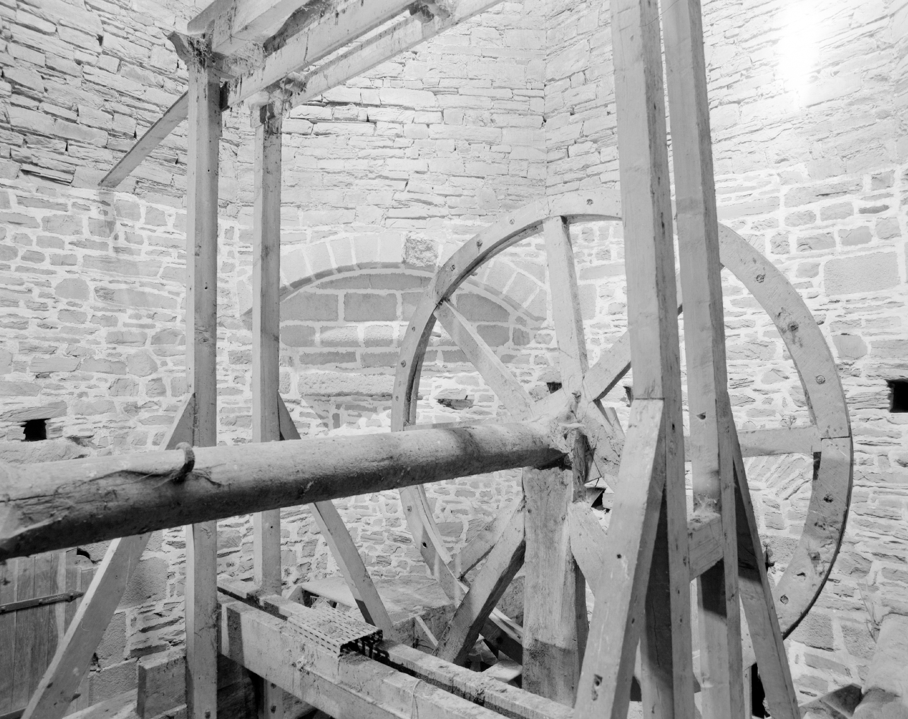 Tour centrale, détail du monte chargeImmatriculation
