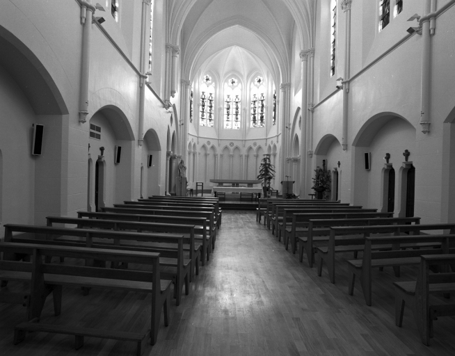 Intérieur de la chapelle 19ème siècle, vue depuis l'entrée vers le choeur.Immatriculation