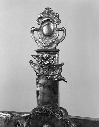 Détail de l'ange portant le titulus et du fleuron supérieurImmatriculation