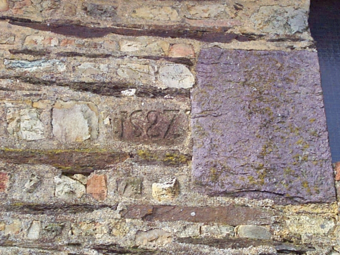 Pierre portant la date 1587 enchassée dans le mur est de la grange : détailImmatriculation