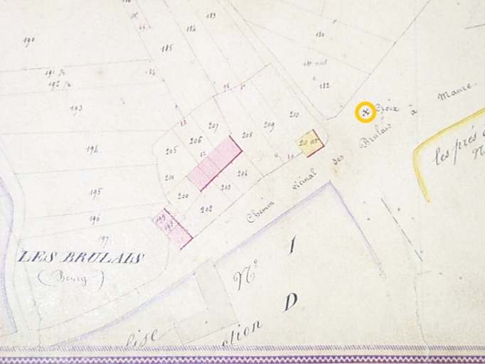 Emplacement originel possible de la croix, à l'entrée du bourg, sur le cadastre napoléonienImmatriculation