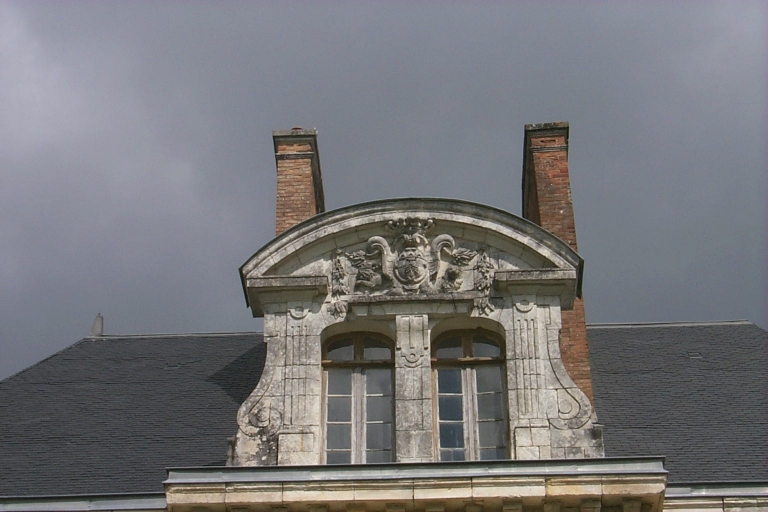 Façade sur le parc, fronton de l'avant-corps aux armes des Jacquelin d'Urfé : détailImmatriculation