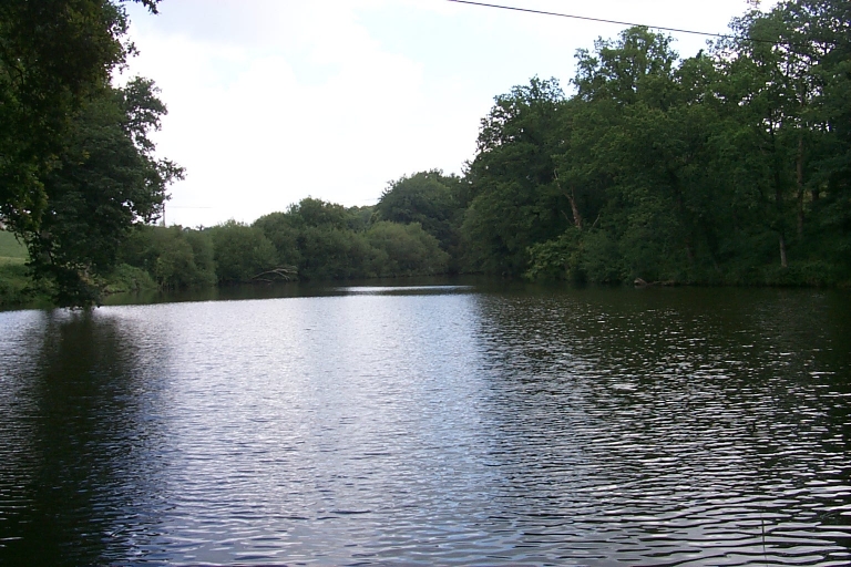 L'étang de Haut, qui entoure le manoir au nord : vue partielle sud, prise de la chausséeImmatriculation