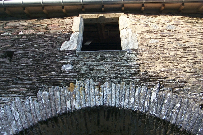 Arcature en claveaux de schiste et fenêtre de la salle haute : vue partielle sudImmatriculation