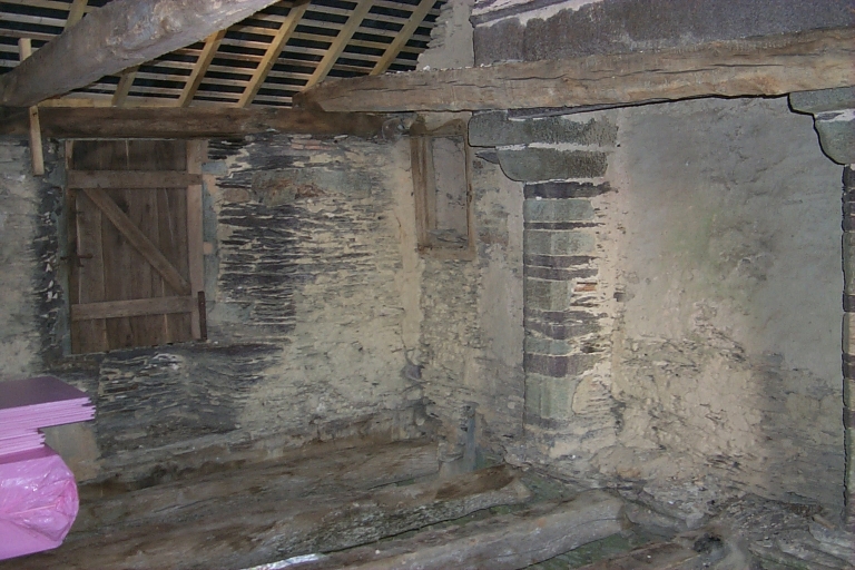 Salle haute, fenêtre à coussièges donnant sur le chemin fermée d'un volet de bois : vue générale sud-ouestImmatriculation