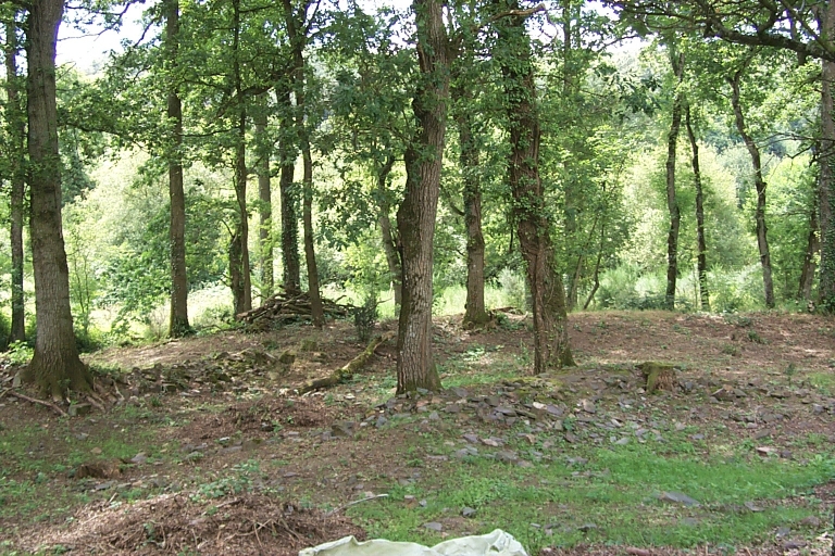 Vestiges de bâtiments en pierre au centre de l'enceinte : vue générale nord-estImmatriculation