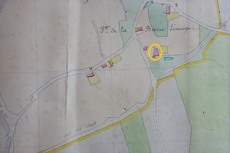 Barre Limoge(la), l'ancien manoir disparu (cerclé en orangé), sur le tableau d'assemblage du cadastre de 1830Immatriculation