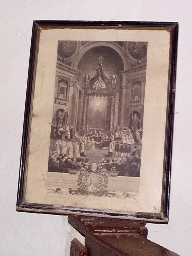 Estampe ; cadre 1 : Image de commémoration, Saint-Melaine (Maure-de-Bretagne fusionnée en Val d'Anast en 2017),