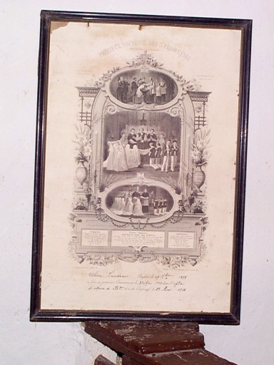 Estampe ; cadre 2 : Image de commémoration, Saint-Melaine (Maure-de-Bretagne fusionnée en Val d'Anast en 2017),