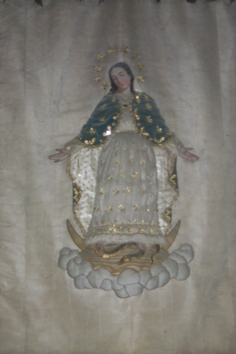 Bannière de procession 1 : saint Pierre ; Immaculée Conception (Maure-de-Bretagne fusionnée en Val d'Anast en 2017),