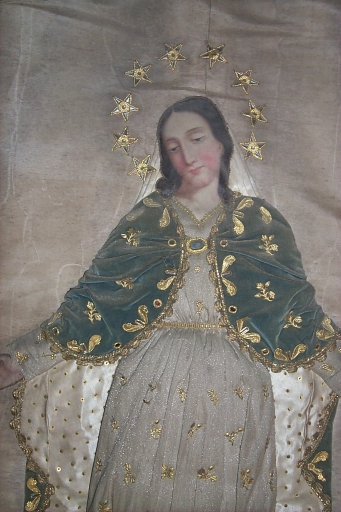 Bannière de procession 1 : saint Pierre ; Immaculée Conception (Maure-de-Bretagne fusionnée en Val d'Anast en 2017),