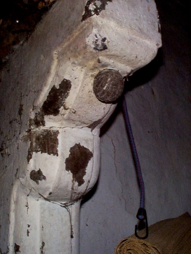 Cheminée de la salle, corbelets du montant droit : détailImmatriculation