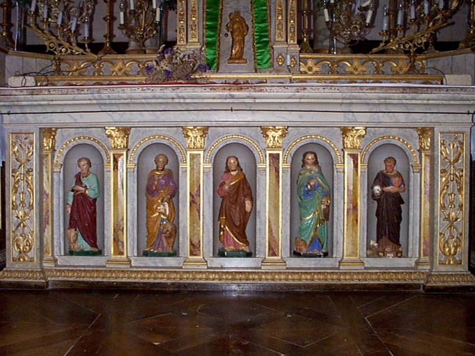 Vue générale de l'autel et des 5 statuesImmatriculation