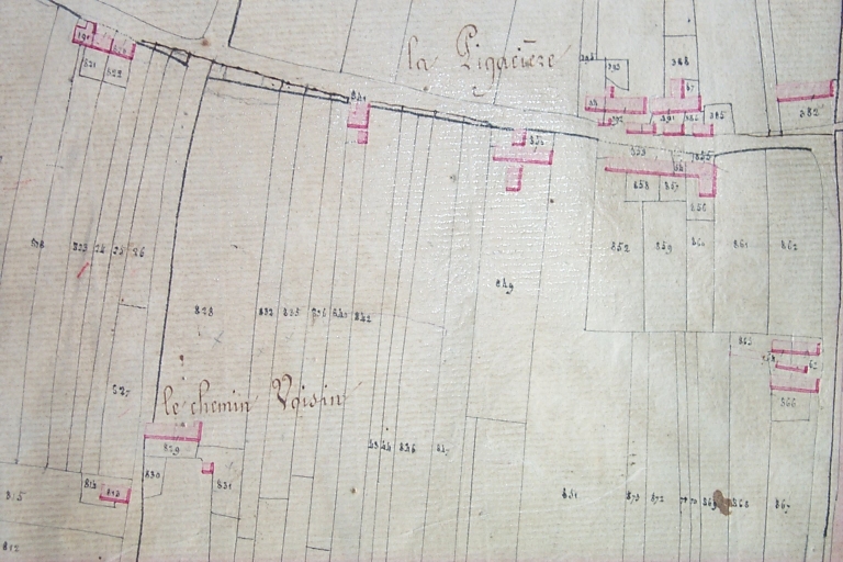 Situation sur le cadastre de 1827 : parcelle 350 au centre droit de l'imageImmatriculation