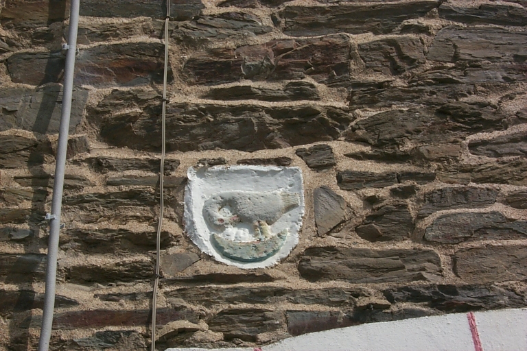 Détail : bas-relief au-dessus de la porte d'entrée : cygne nourrissant ses petitsImmatriculation