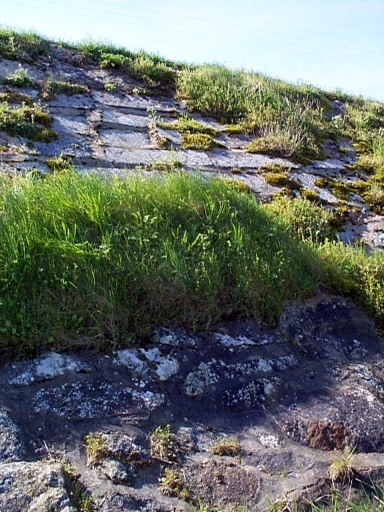 Détail du parement de la digue dans la partie est du villageImmatriculation