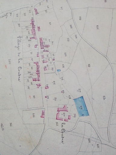Plan de situation sur le cadastre de 1826 : le manoir en bas sur l'imageImmatriculation
