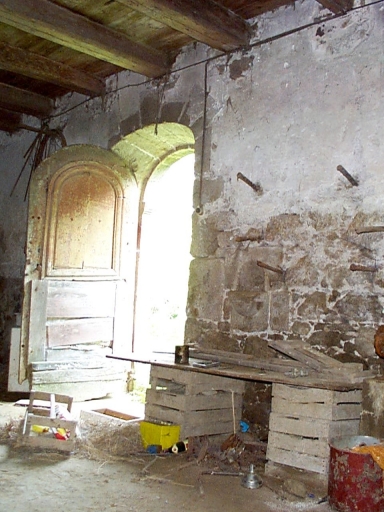 La porte latérale est de l'ancienne chapelle ; un bénitier à droite sur l'imageImmatriculation