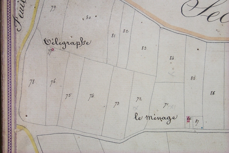 Le télégraphe et le Ménage sur le cadastre de 1826Immatriculation