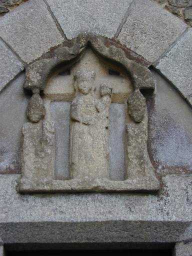 Remploi : Vierge à l'Enfant, élément de l'ancienne croix de cimetière, au dessus de la porte est du collatéral nordImmatriculation