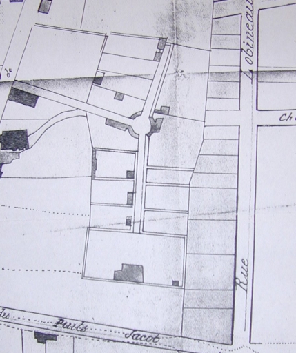 Prolongement de la rue Lobineau. Partie comprise entre la rue du Puits-Jacob et le chemin de Bourbansin, 1911 (AC Rennes)Immatriculation