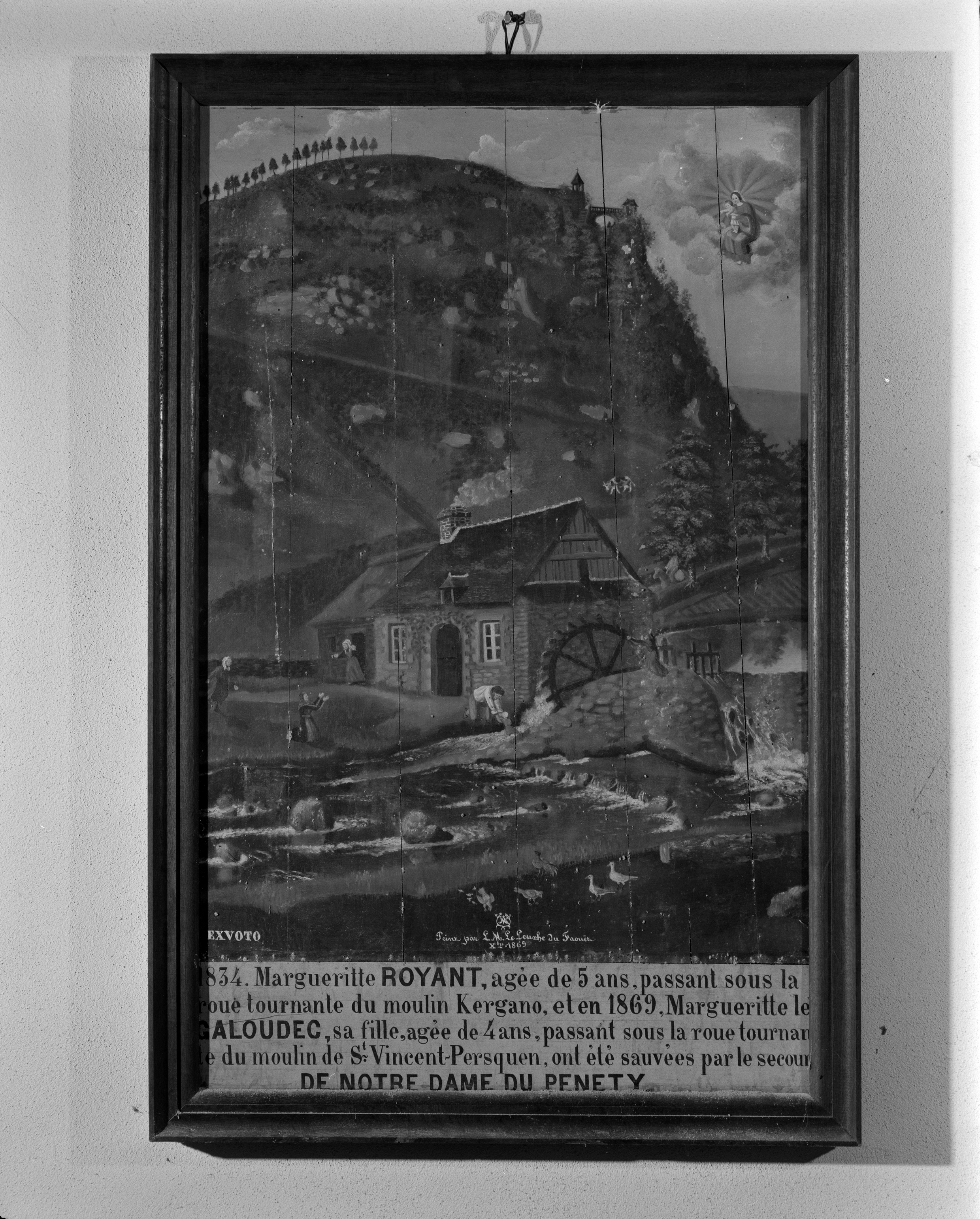 Ex-voto, au moulin de Kergano, détail.Immatriculation