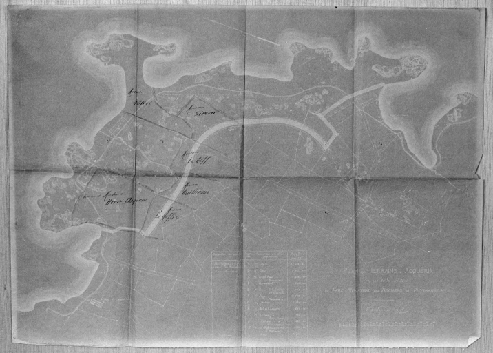Plan des terrains à acquérir en vue de la création du parc municipal des rochers de Ploumanac'h, tirage sur papier bleu, s.n., 1924, 1/100e (AD 22)Immatriculation