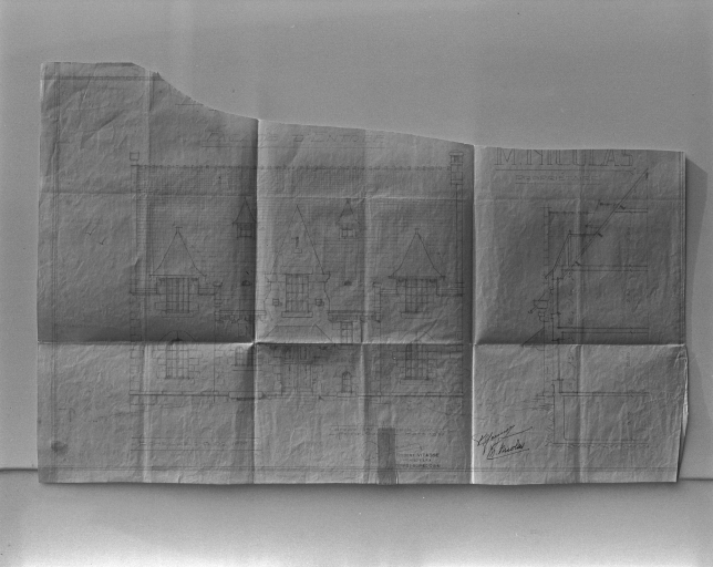Façade d'entrée, tirage sur papier, par Robert Vitasse, architecte, mars 1937.Immatriculation