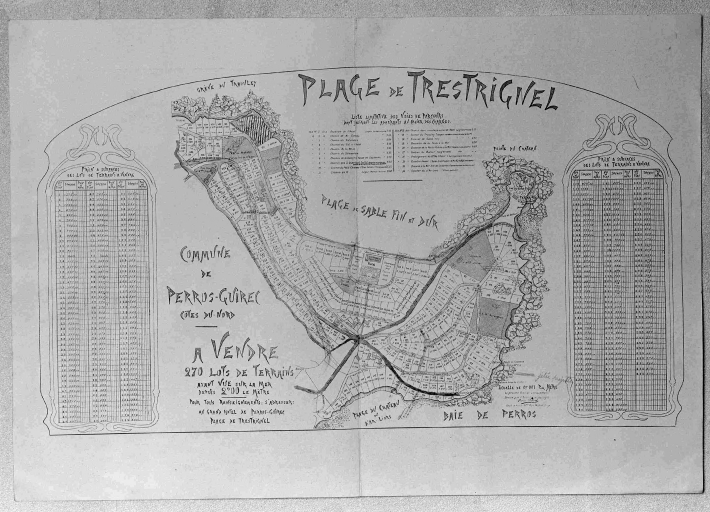 Plage de Trestrignel : Frontispice du plan du lotissement de Trestrignel, par Pierre Botrel, architecte, 1901 (AC Perros-Guirec)Immatriculation