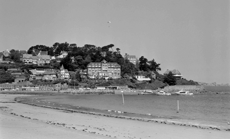 La pointe de Beg-ar-Storloc'h et les villas, vue depuis la plage de TrestraouImmatriculation