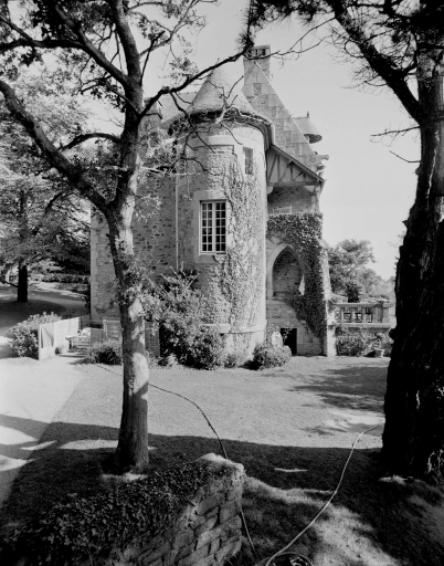 Elévation latérale gauche, avec tourelle d'escalier et porche d'entrée.Immatriculation