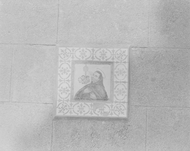 Carreaux de céramique : détail du décor porté sur la façade droite (saint Antoine et anges)Immatriculation