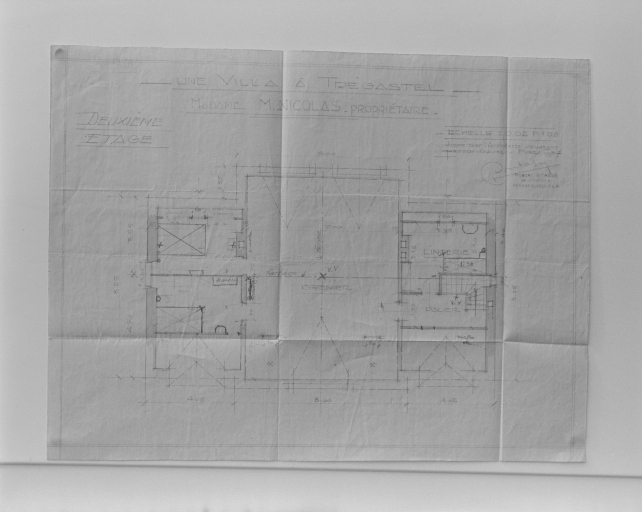 Deuxième étage, tirage sur papier, par Robert Vitasse, architecte, mars 1937.Immatriculation
