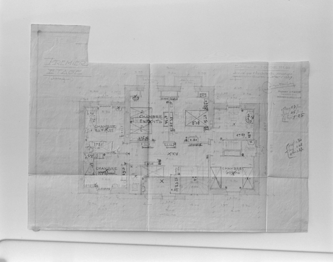 Premier étage, tirage sur papier, par Robert Vitasse, architecte, mars 1937.Immatriculation