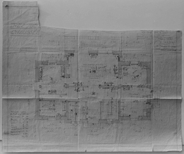 Sous-sol et canalisations, tirage sur papier, par Robert Vitasse, architecte, mars 1937.Immatriculation