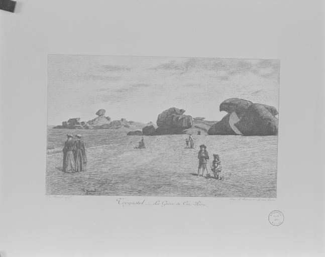 Trégastel, la grève de Coz-Pors, gravure, par Théophile Busnel, Salmon et Andail imprimeurs à Paris, 1890Immatriculation