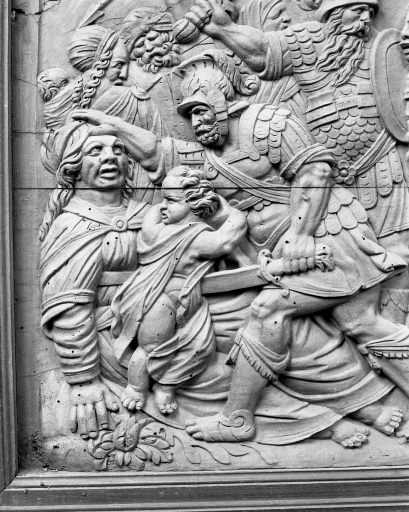 Panneau isolé 2 (le massacre des Innocents), détailImmatriculation