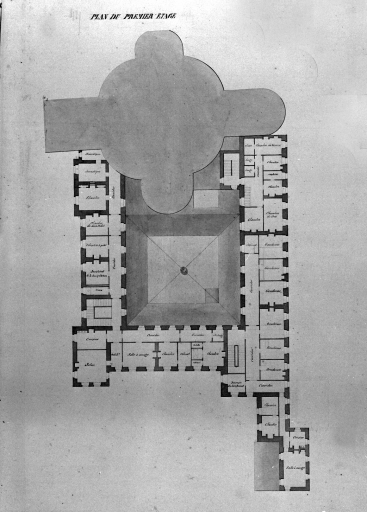 Plan du premier étage par Joseph Bigot, 1835-1836 (A.D. Finistère, Atlas des bâtiments départementaux)Immatriculation