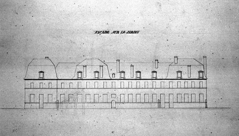 Aile est, élévation est, par Joseph Bigot, 1835-1836 (A.D. Finistère, Atlas des bâtiments départementaux)Immatriculation