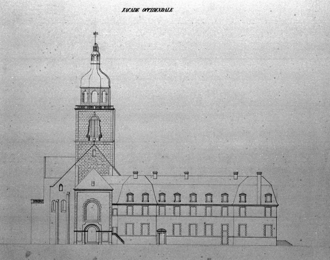 Aile ouest, élévation ouest, par Joseph Bigot, 1835-1836 (A.D. Finistère, Atlas des bâtiments départementaux)Immatriculation