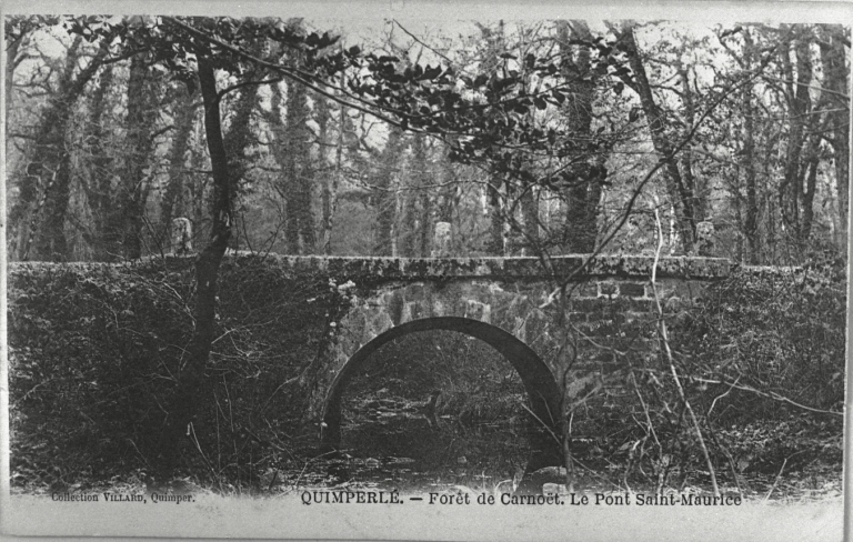 Forêt de Carnoët, le pont Saint-Maurice (détruit). Carte postale, vers 1900 (A.D. Finistère, 1 Fi)Immatriculation