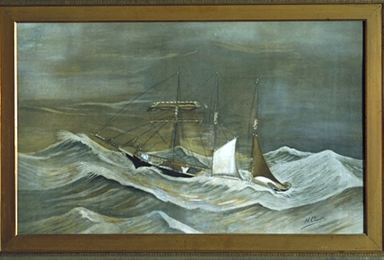 Tableau ex-voto : Trois-mats goélette par gros temps,