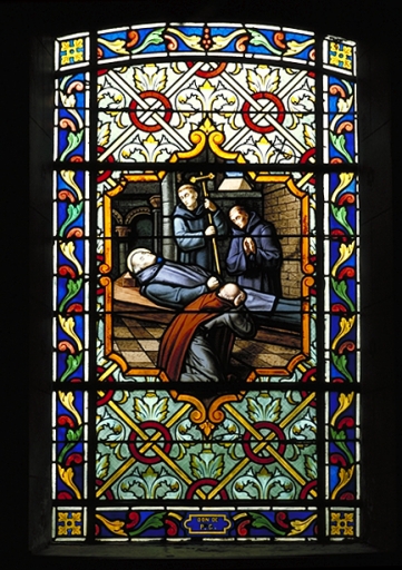 Verrière à personnages de la baie 6 : Mort de saint Benoît,