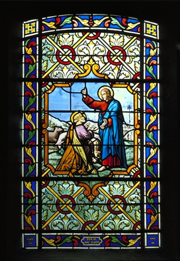 Verrière à personnages de la baie 5 : Remise des clés à saint Pierre,