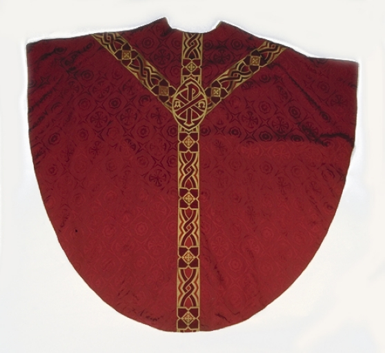 Ornement rouge 4 : chasuble, étole, manipule, voile de calice,