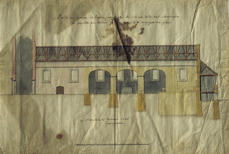 Plan de coupe dressé par l'ingénieur Garengeau, daté du 2 janvier 1726Immatriculation