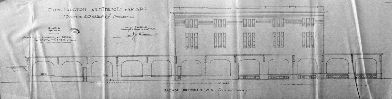Entrepôt, façade sud, dessin, (A. C. Rennes)Immatriculation