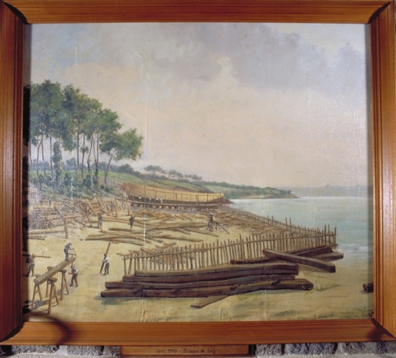 Tableau : Chantier naval des "Millières" en La Richardais. Les scieurs de long,