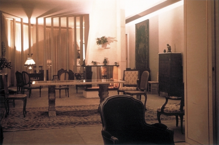 Vue de la salle-à-manger et du salon, depuis le jardin d'hiver, vers 1950 (A. P.)Immatriculation